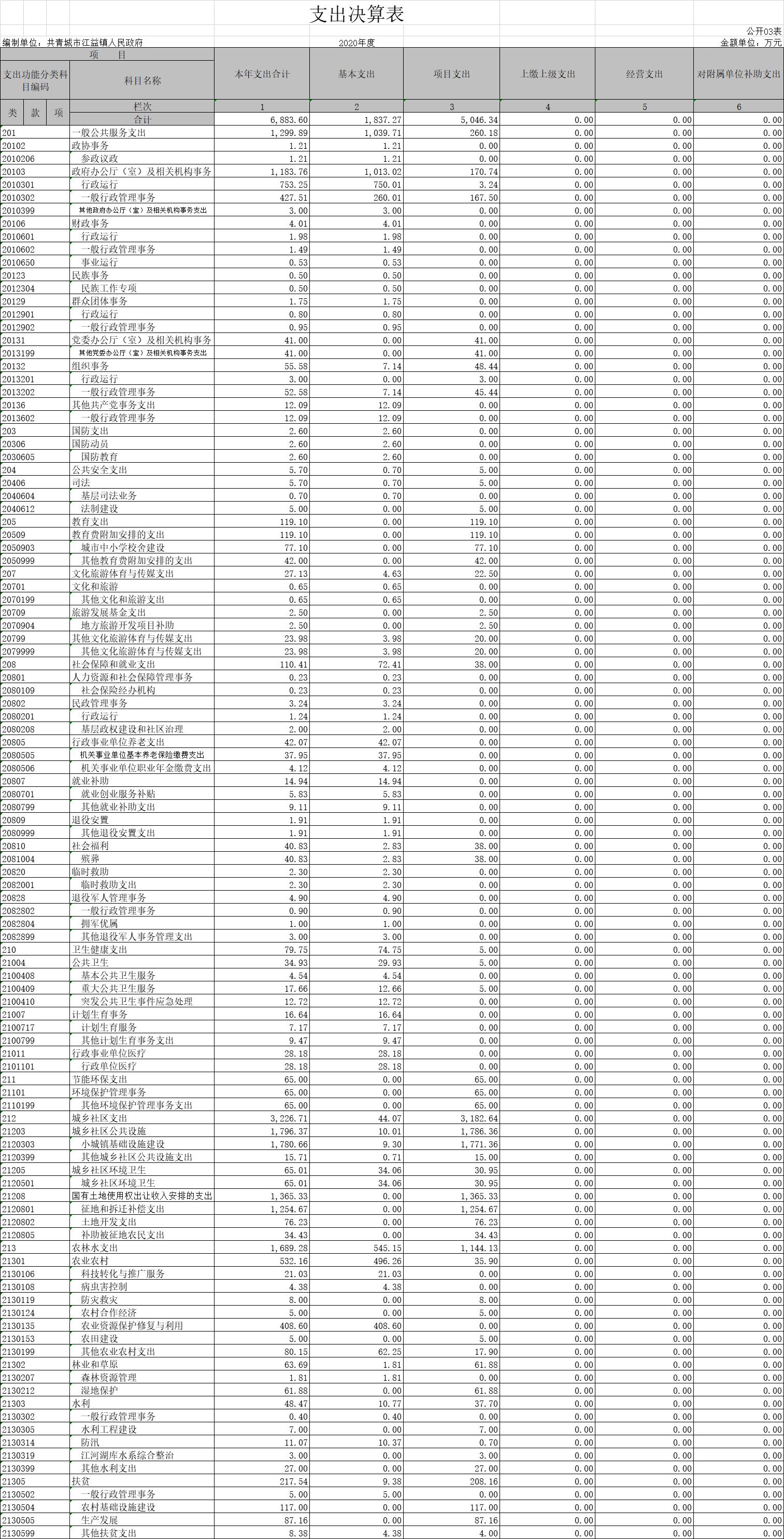 本年支出的具体构成为:基本支出1837.27万元,占26.69%;项目支出5046.34万元,占73.31%;经营支出0万元,占0%;其他支出(对附属单位补助支出、上缴上级支出)0万元,占0%。