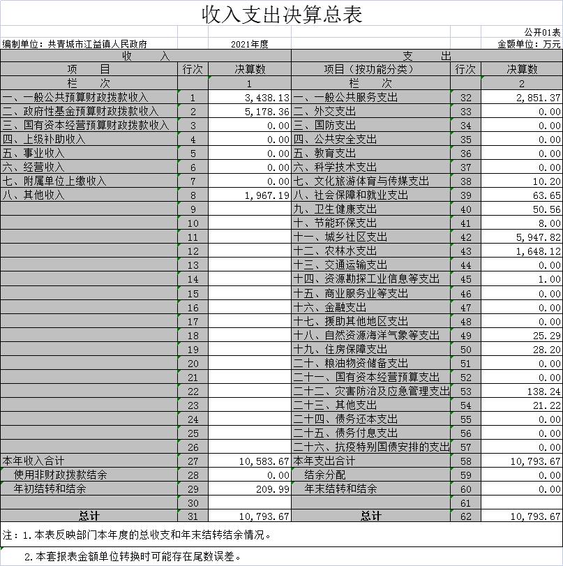 纳入本套部门决算汇编范围的单位共1个,包括:江益镇人民政府。