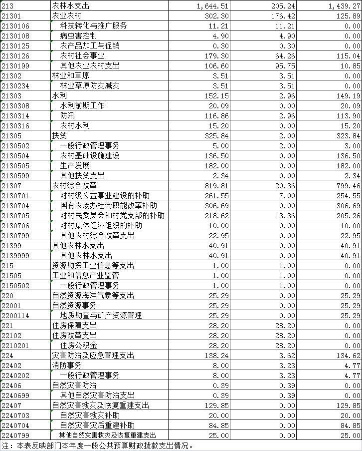 农林水支出年初预算数为404.1万元,决算数为1644.51万元,完成年初预算的406.96%,主要原因是:年中追加农林水经费。