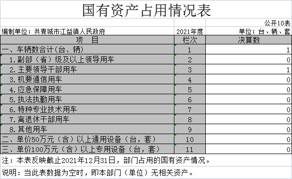 截至2021年12月31日,本部门(单位)国有资产占用情况见公开10表《国有资产占用情况表》。其中车辆中的主要领导干部用车1辆。