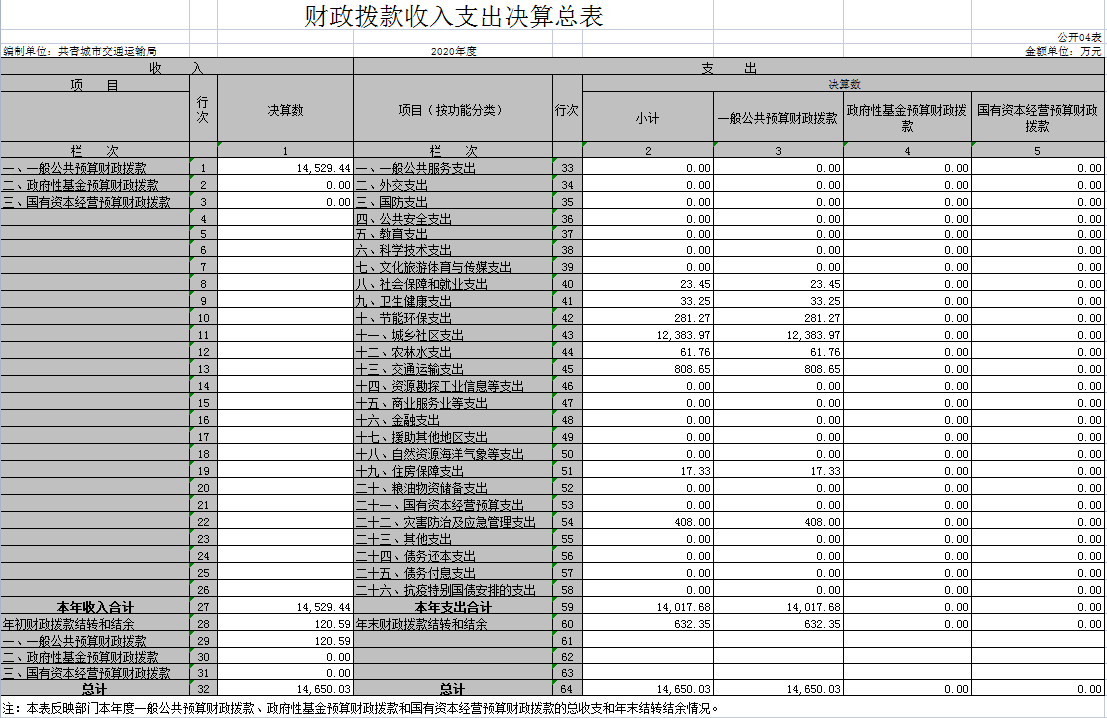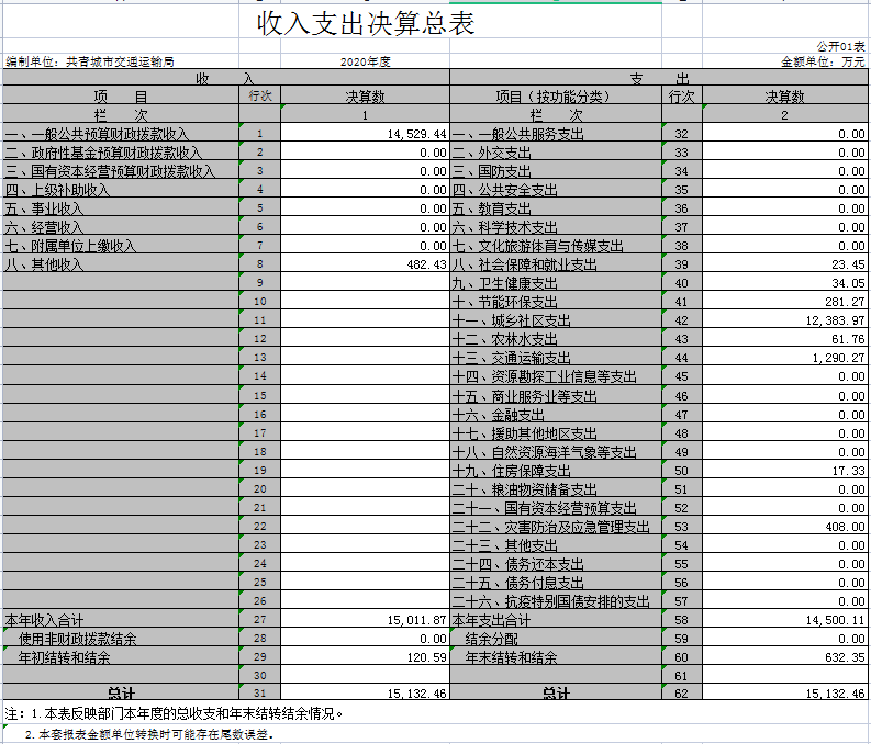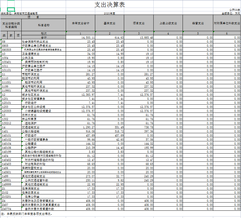 本部门2020年度支出总计15132.46万元,其中本年支出合计14500.11万元,较2019年增加3092.24万元,增长27.11%,主要原因是:共青城市交通运输局2019年度3月从共青城市交通运输局与城乡建设局分离出来;年末结转和结余632.35万元,较2019年增加632.35万元,增长100%,主要原因是:共青城市交通运输局是2019年度新成立,决算时没有上年结转和结余。