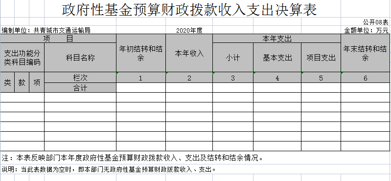 八、政府性基金预算财政拨款收入支出决算表