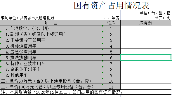 十、国有资产占用情况表