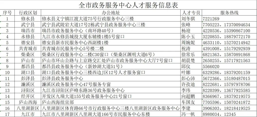 若您还有其他人才问题,可通过支付宝搜索“赣服通”或者赣服通APP上“人才专区”查询或打以下人才服务热线咨询: