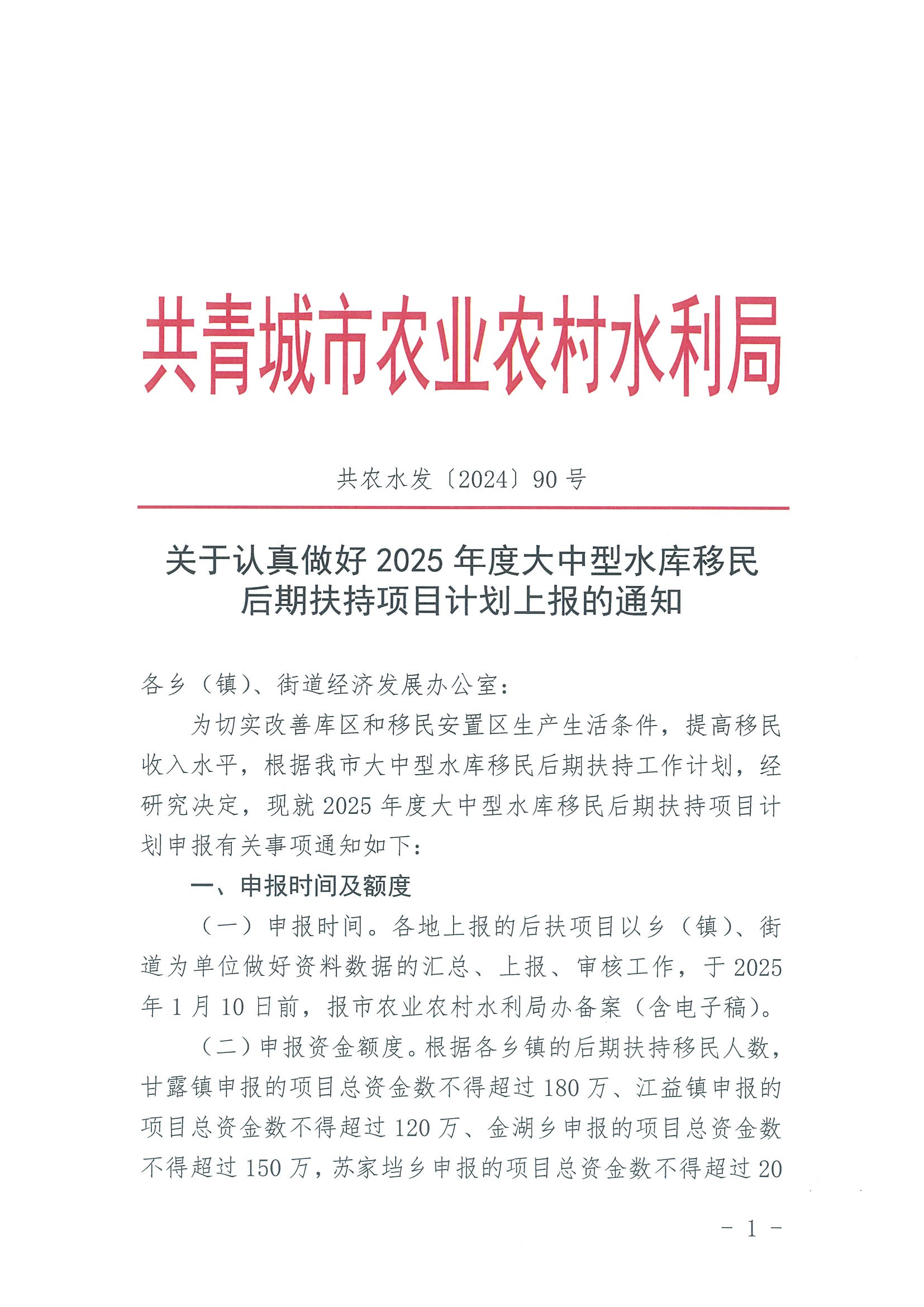 关于认真做好2025年度大中型水库移民后期扶持项目计划上报的通知