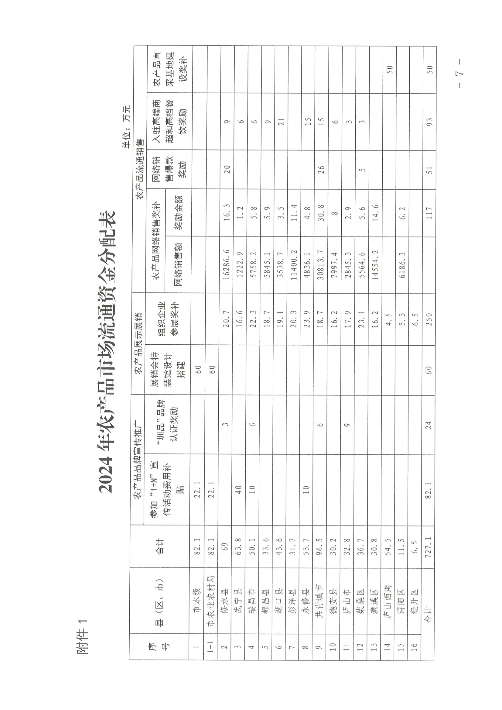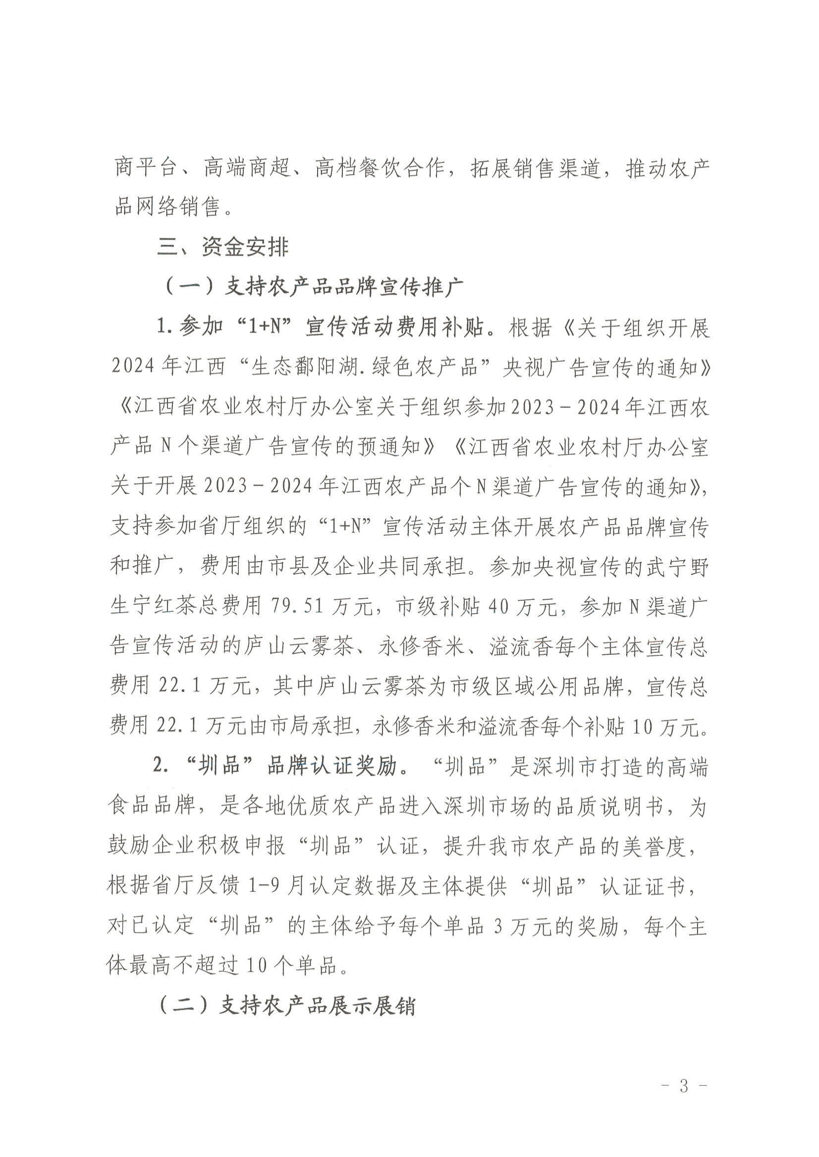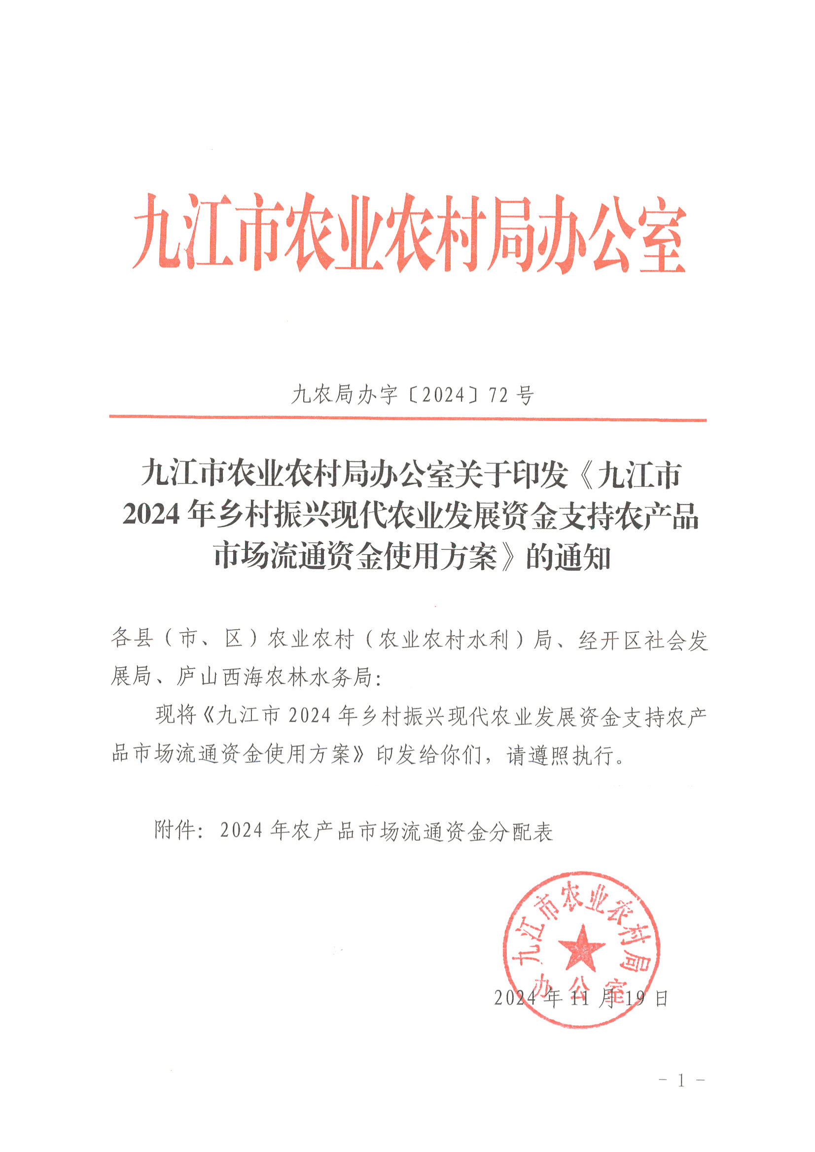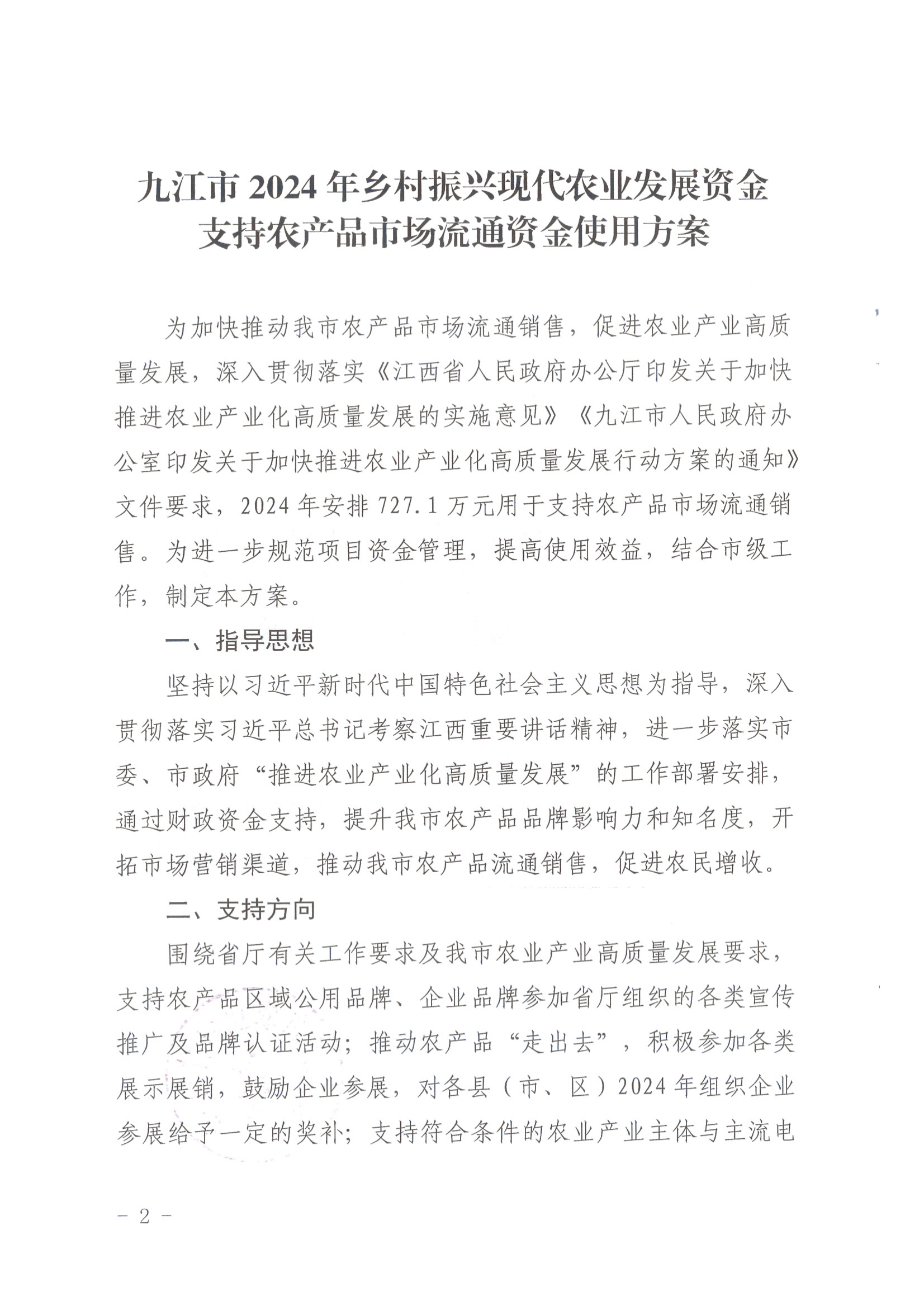 九江市农业农村局办公室关于印发《九江市2024年乡村振兴现代农业发展资金支持农产品市场流通资金使用方案》的通知