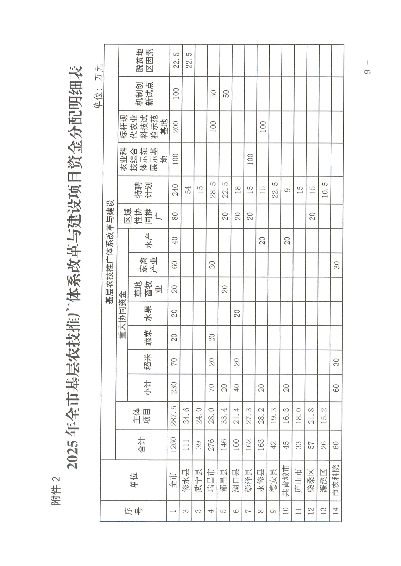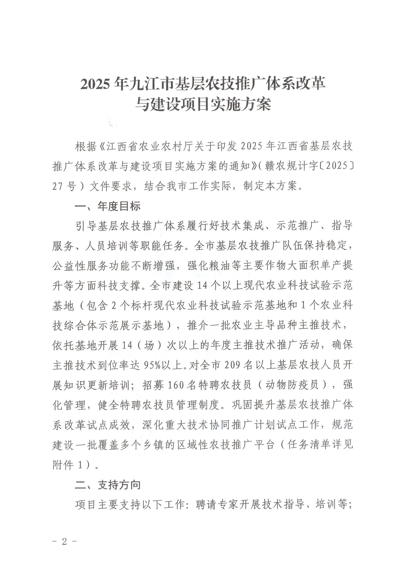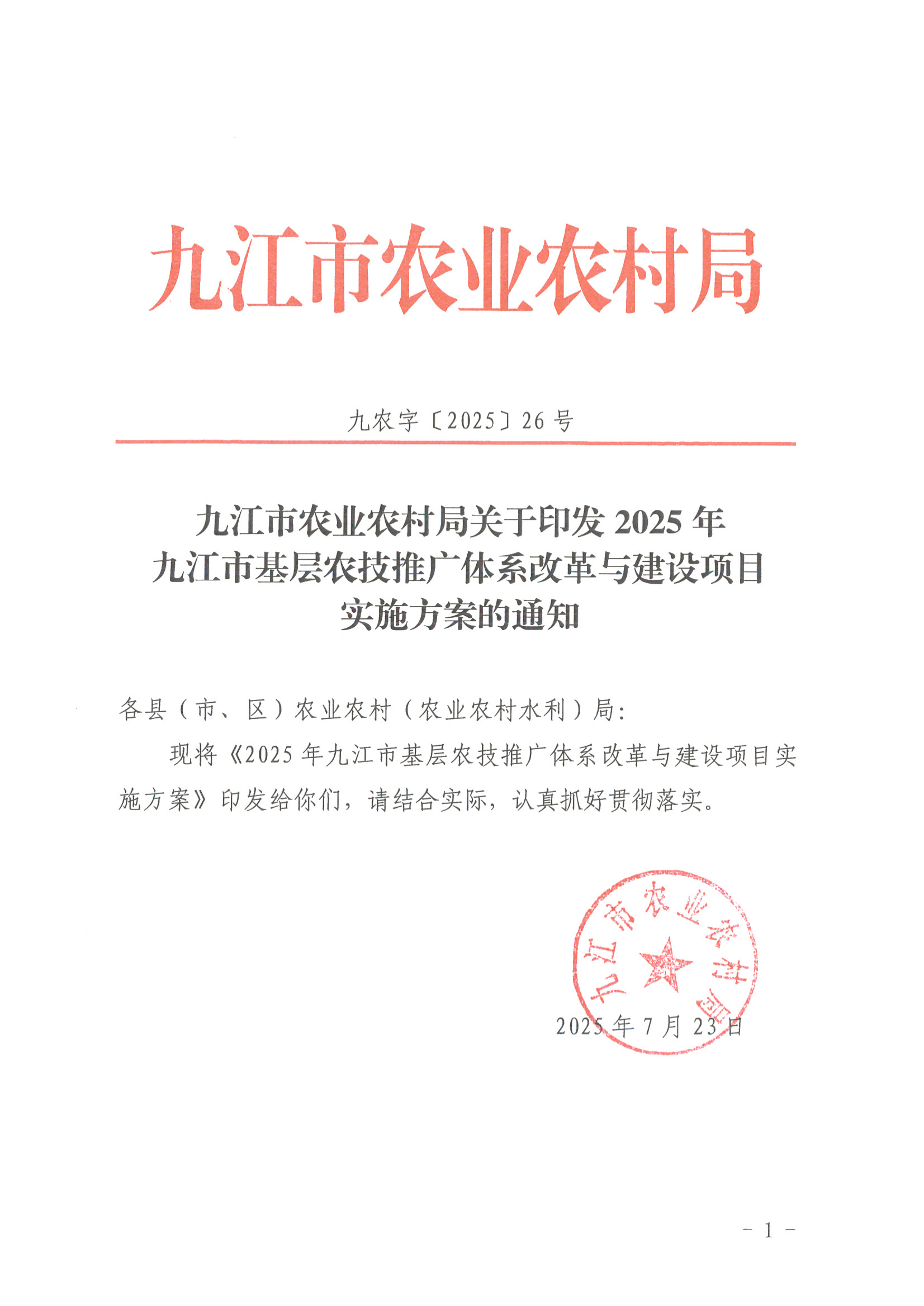 关于印发2025年九江市基层农技推广体系改革与建设项目实施方案的通知