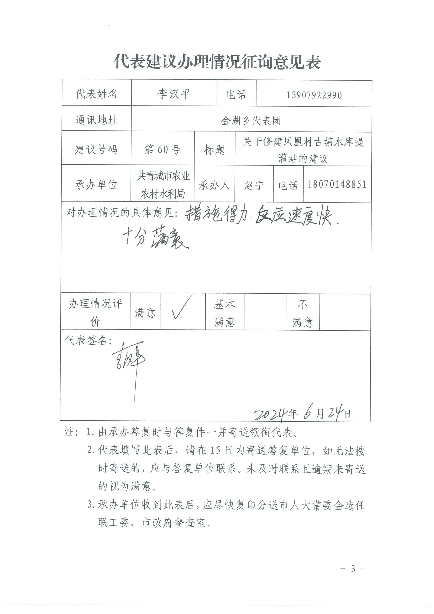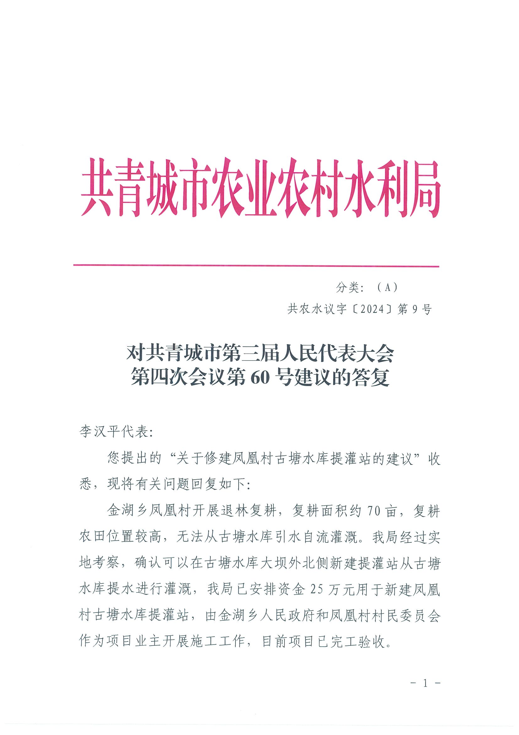 对共青城市第三届人民代表大会第四次会议第60号建议的答复