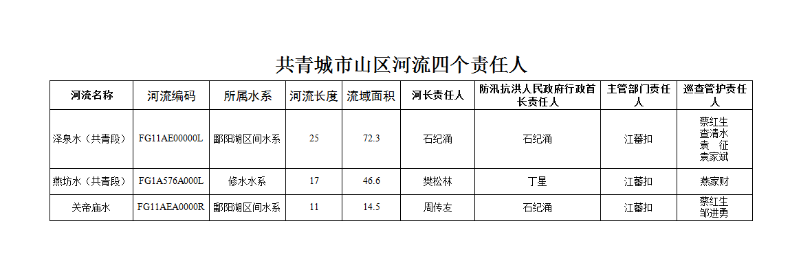 为切实加强我市山区河道管理,畅通河道行洪空间,现将山区河道四个责任人公示如下。