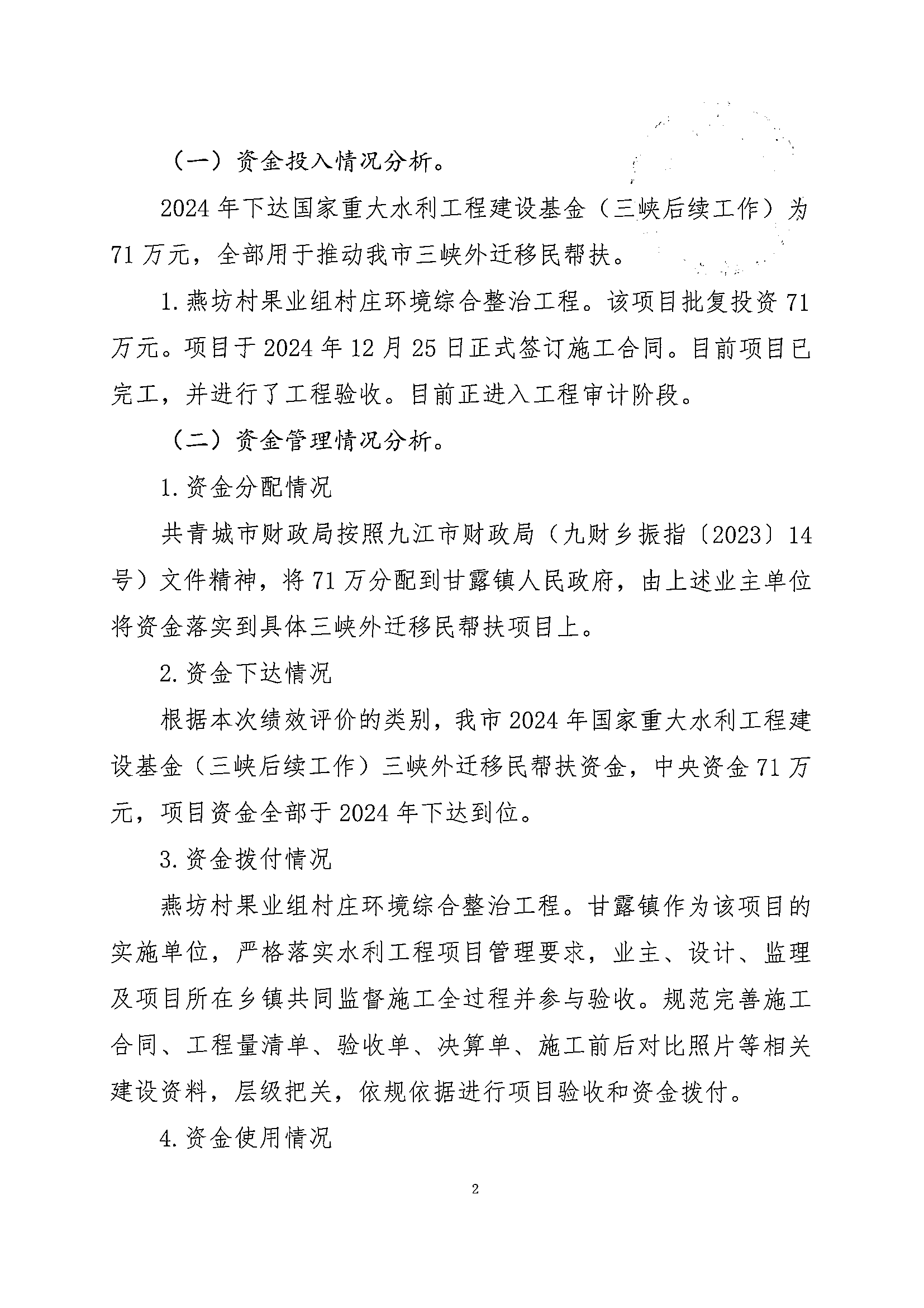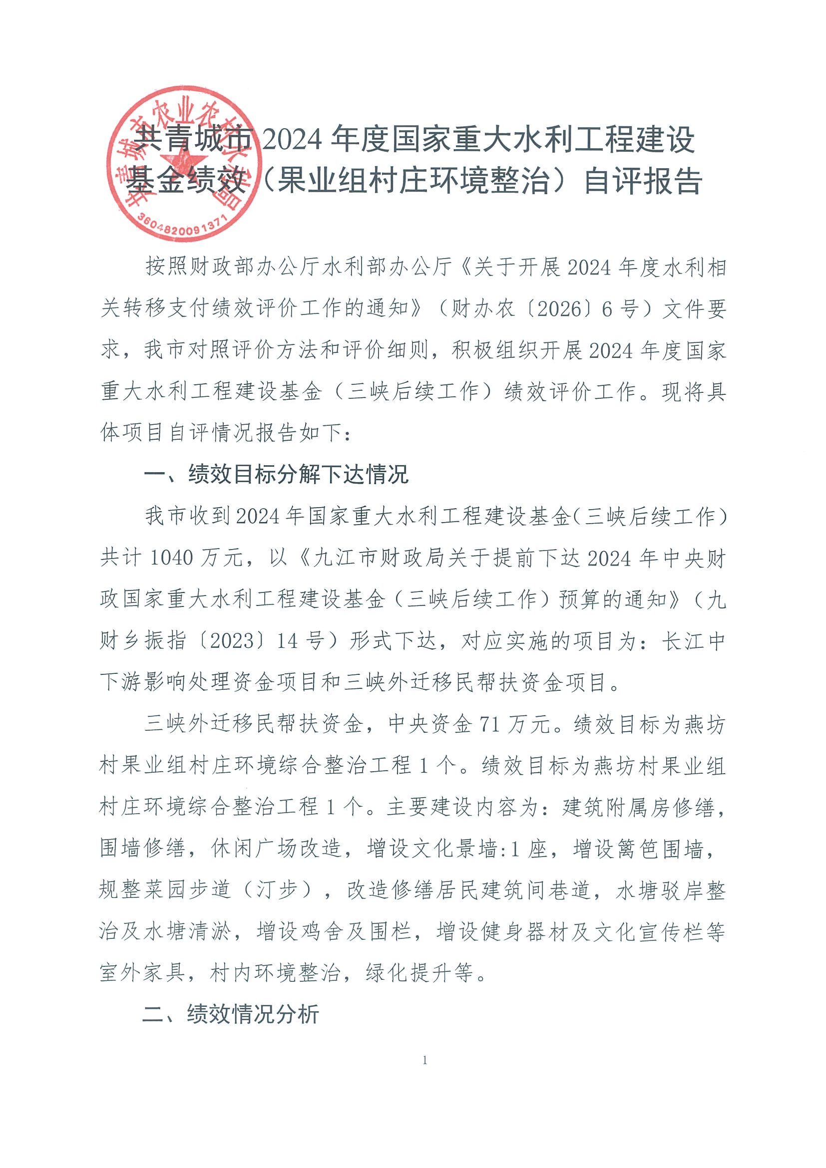 共青城市2024年度国家重大水利工程建设基金绩效(果业组村庄环境整治)自评报告