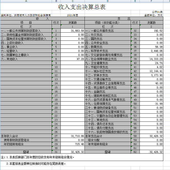 一、收入支出决算总表