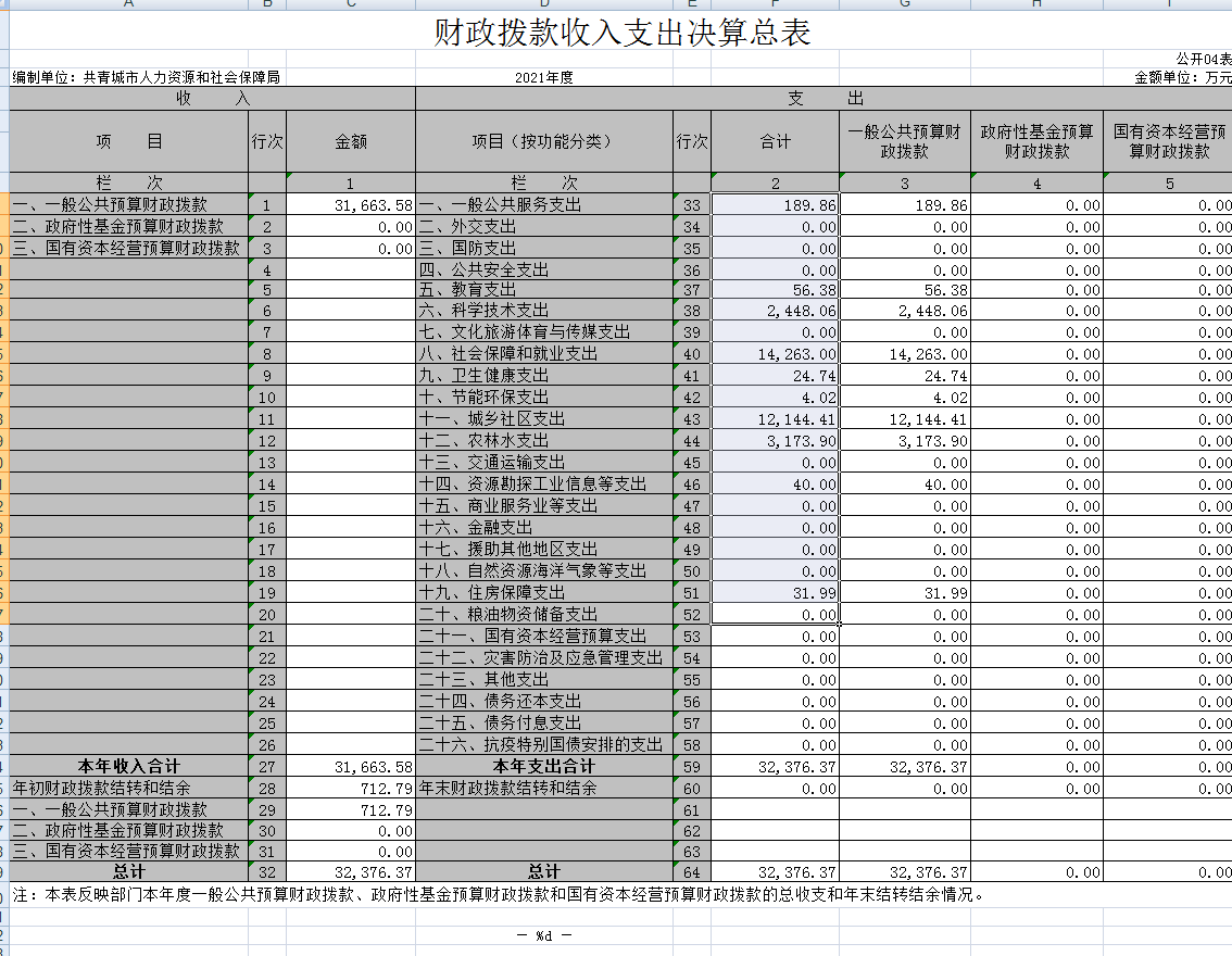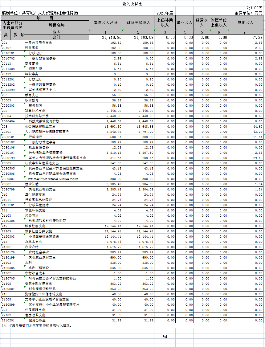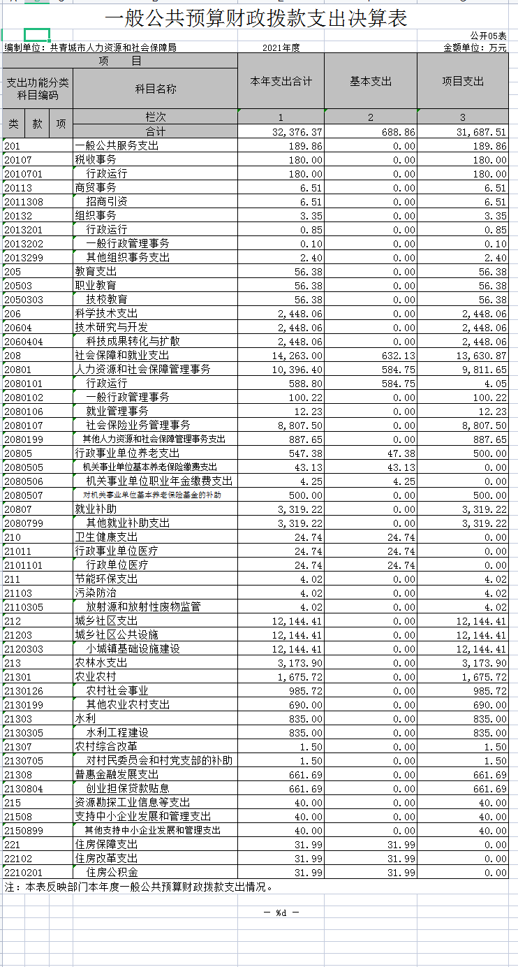 共青城市人力资源和社会保障局2021年度部门决算