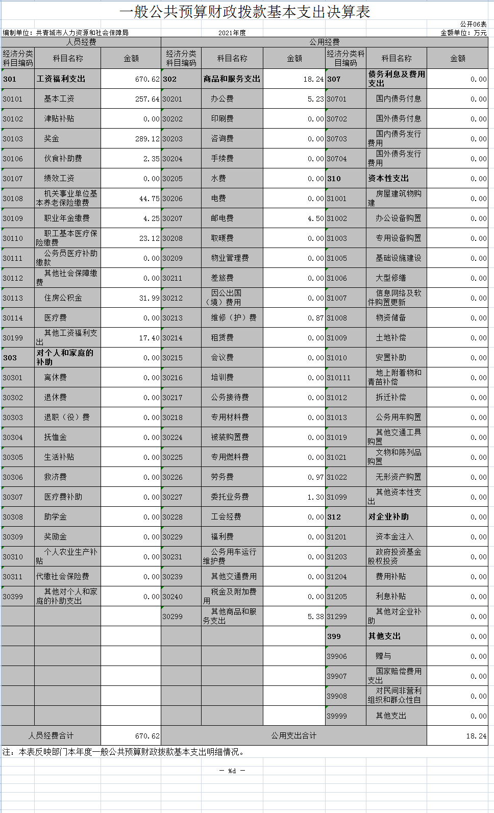 第二部分 2021年度部门决算表