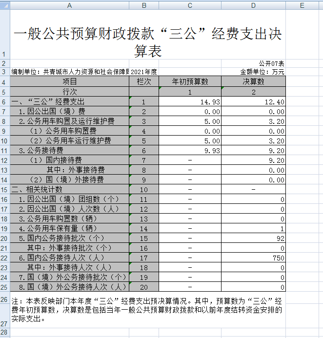 七、一般公共预算财政拨款“三公”经费支出决算表