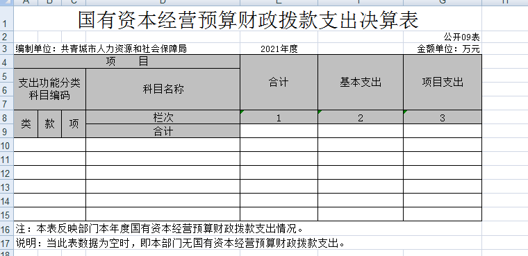 九、国有资本经营预算财政拨款支出决算表