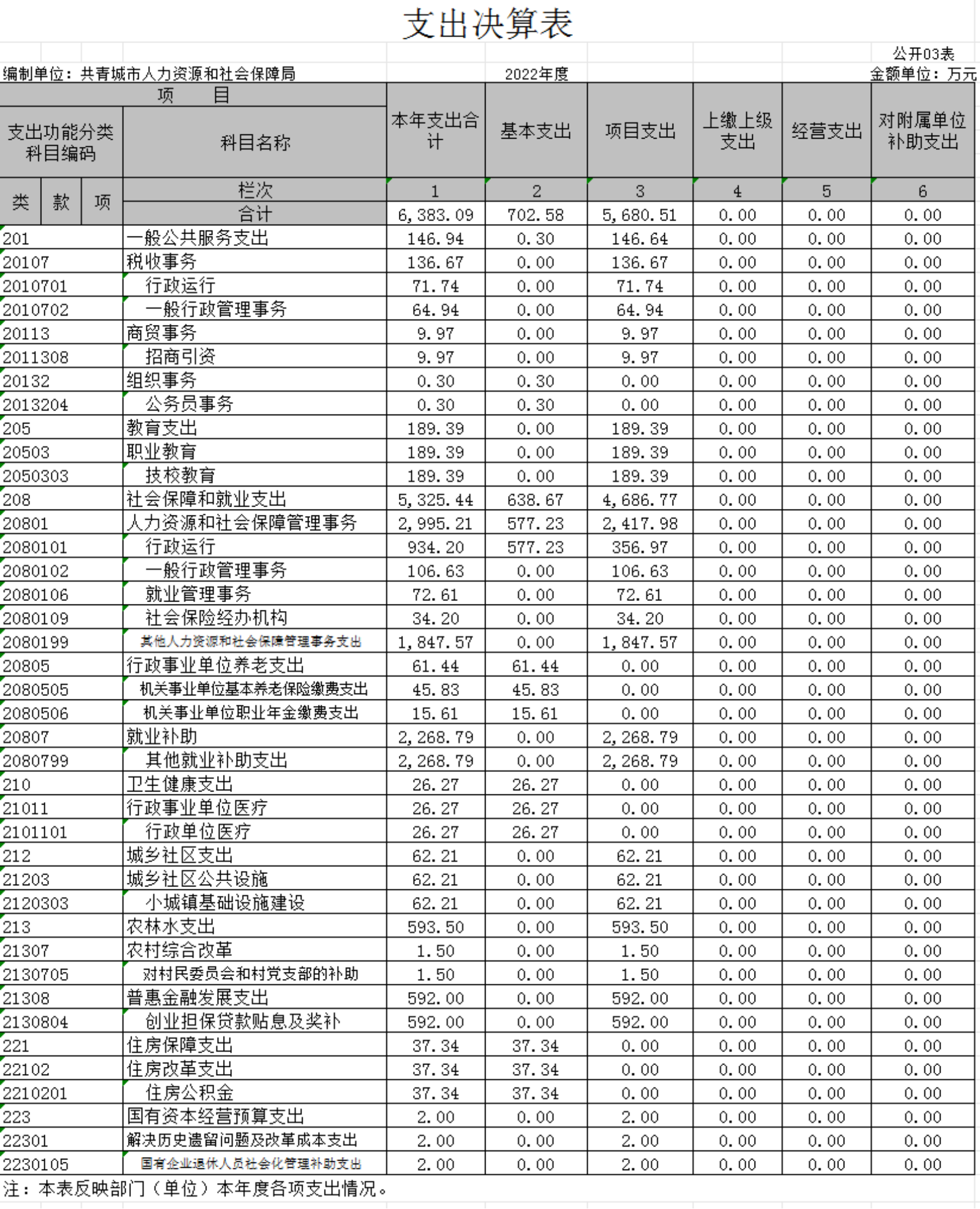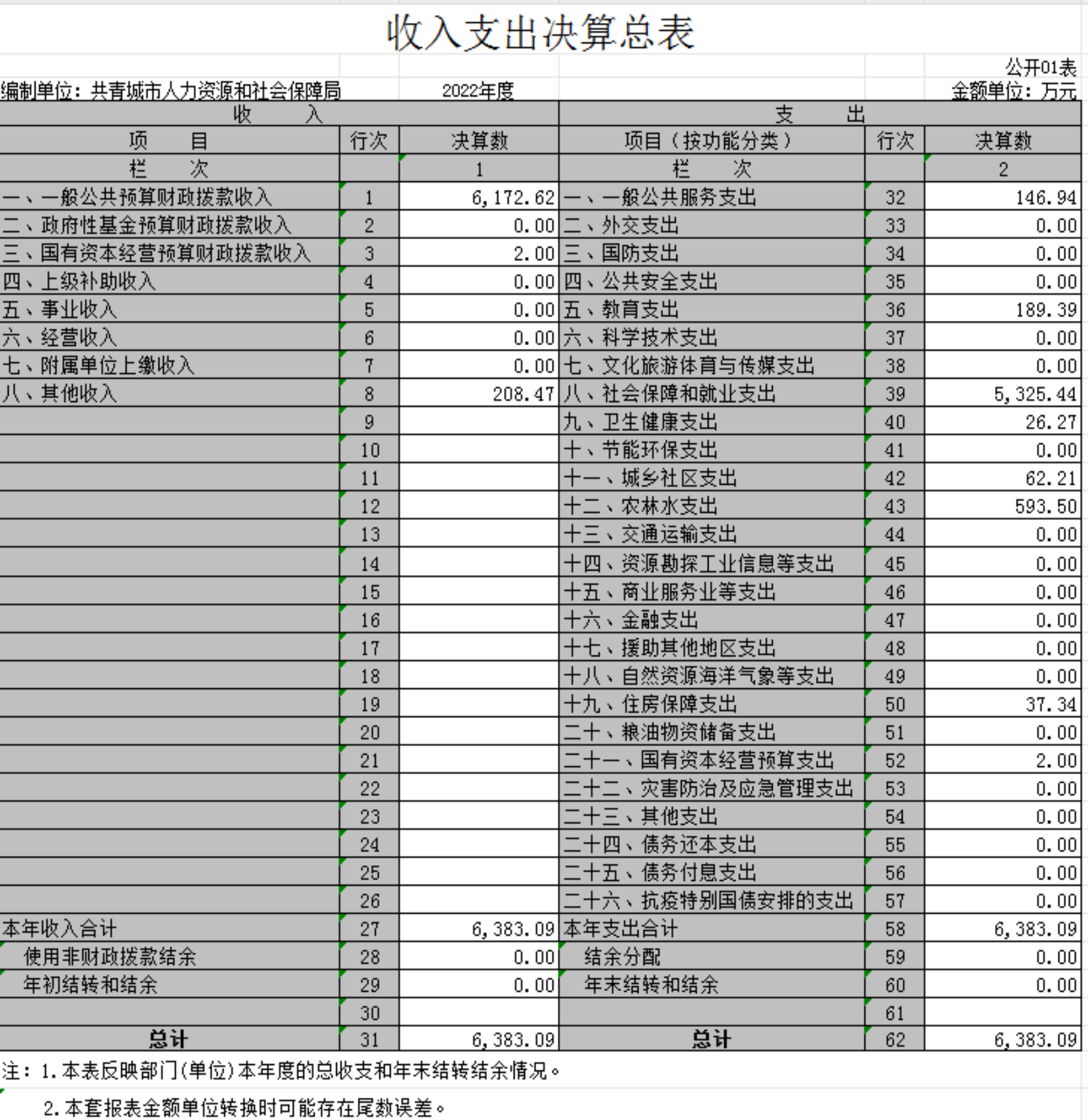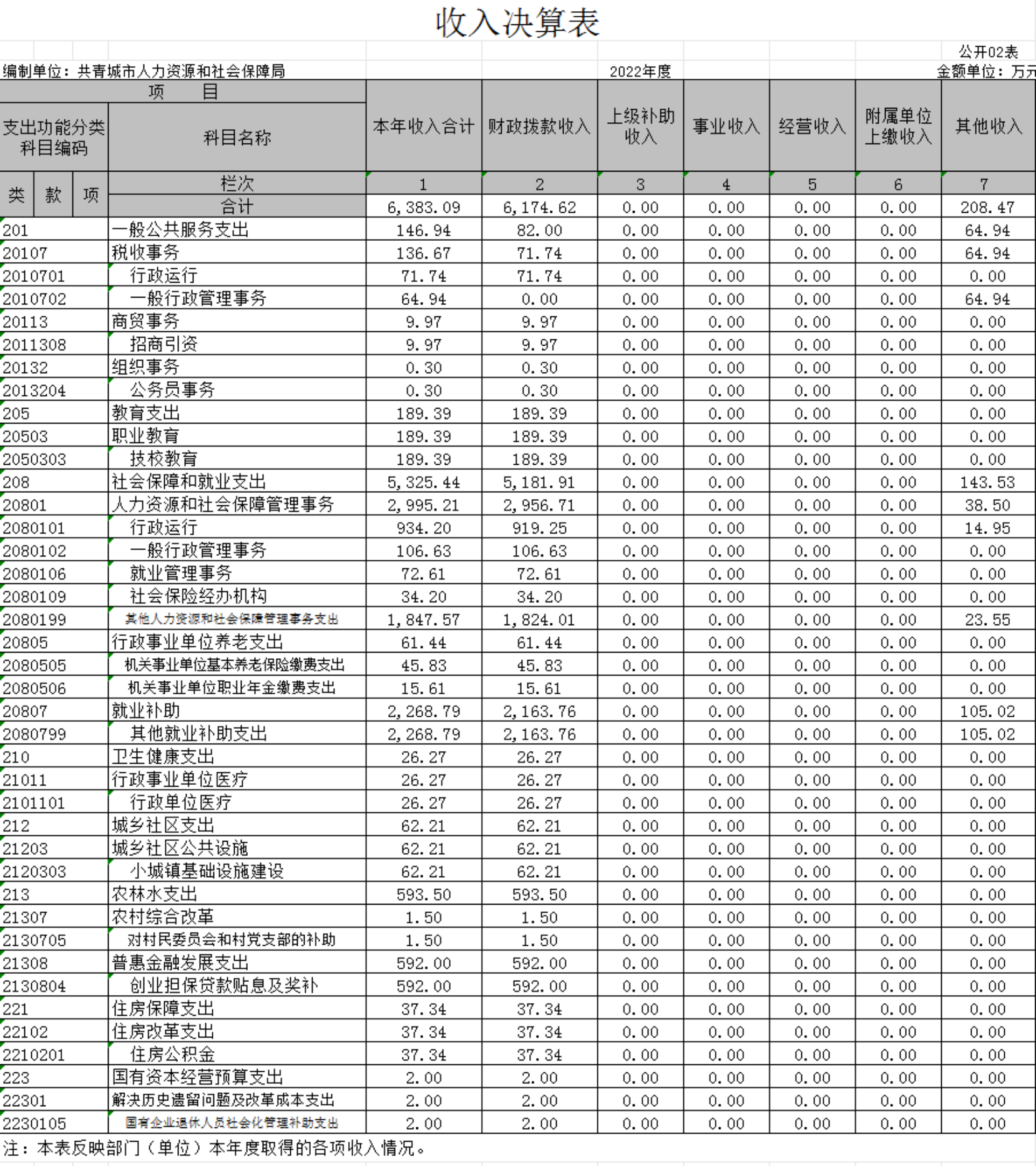 第二部分 2022年度部门决算表