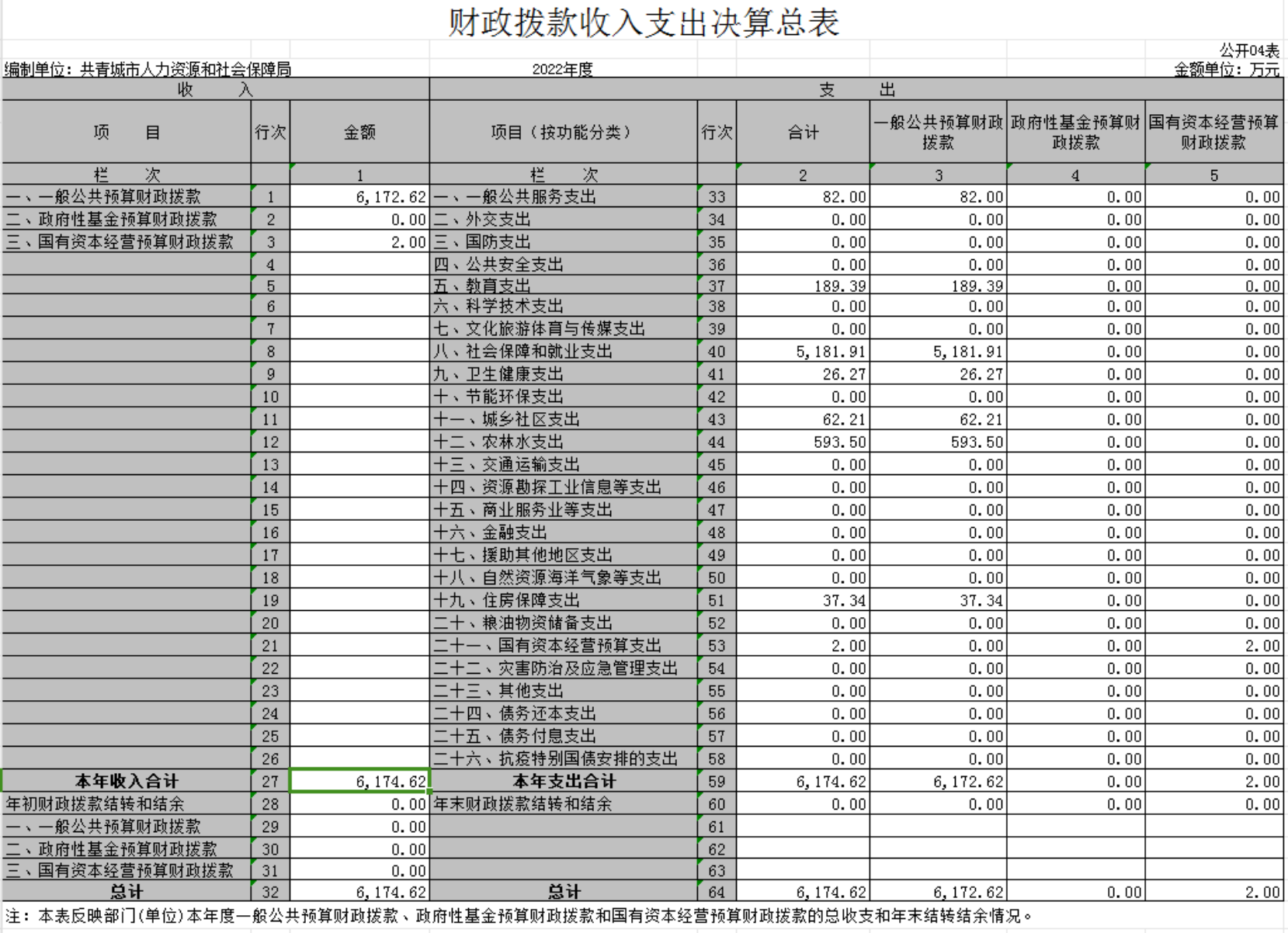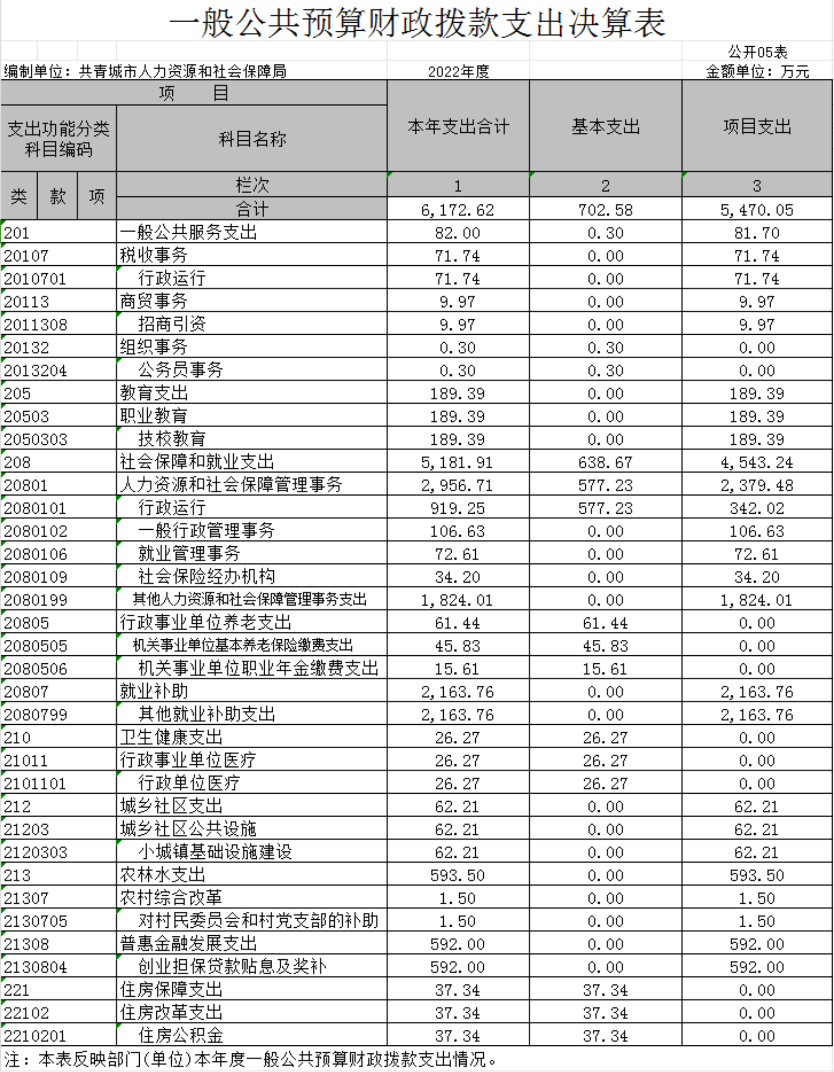 共青城市人力资源和社会保障局2022年度部门决算公开