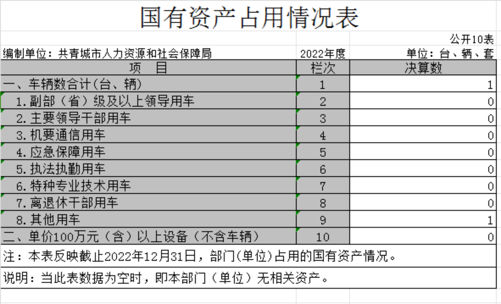 截至2022年12月31日,本部门(单位)国有资产占用情况见公开10表《国有资产占用情况表》。其中:车辆中的其他用车主要是用于贷前调查等工作。