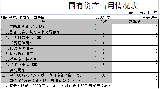 截止2020年12月31日,本部门(单位)国有资产占用情况见公开10表《国有资产占用情况表》。