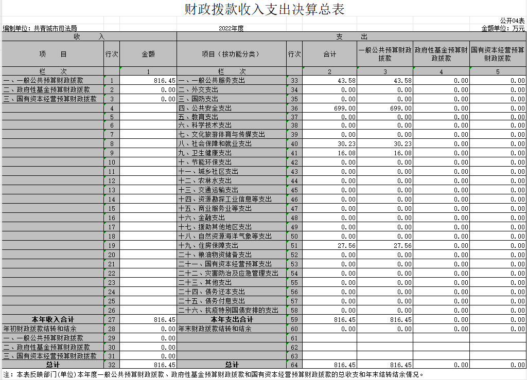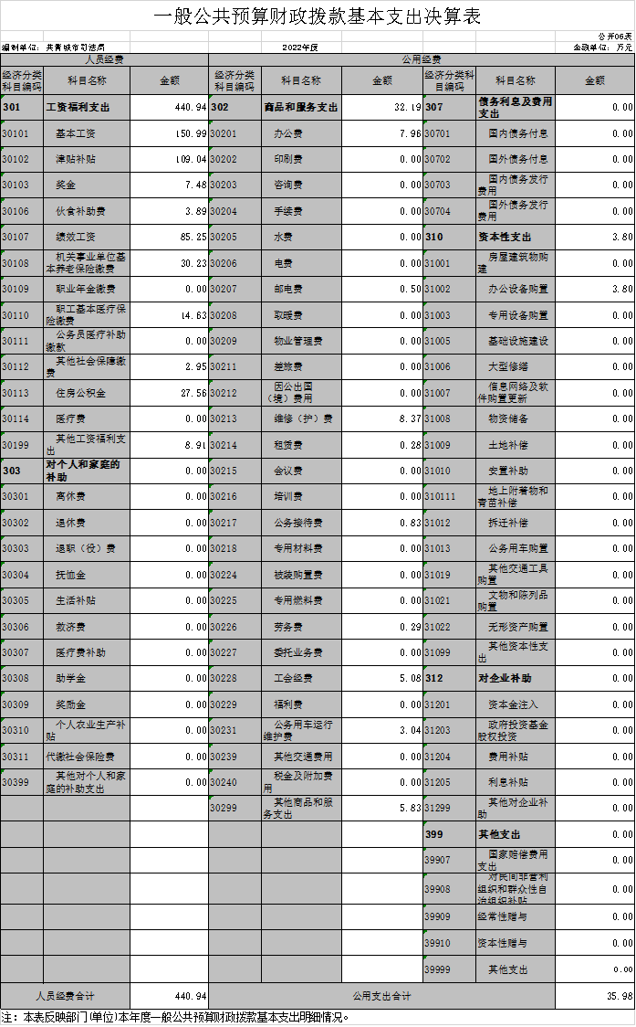 共青城市司法局2022年度部门决算