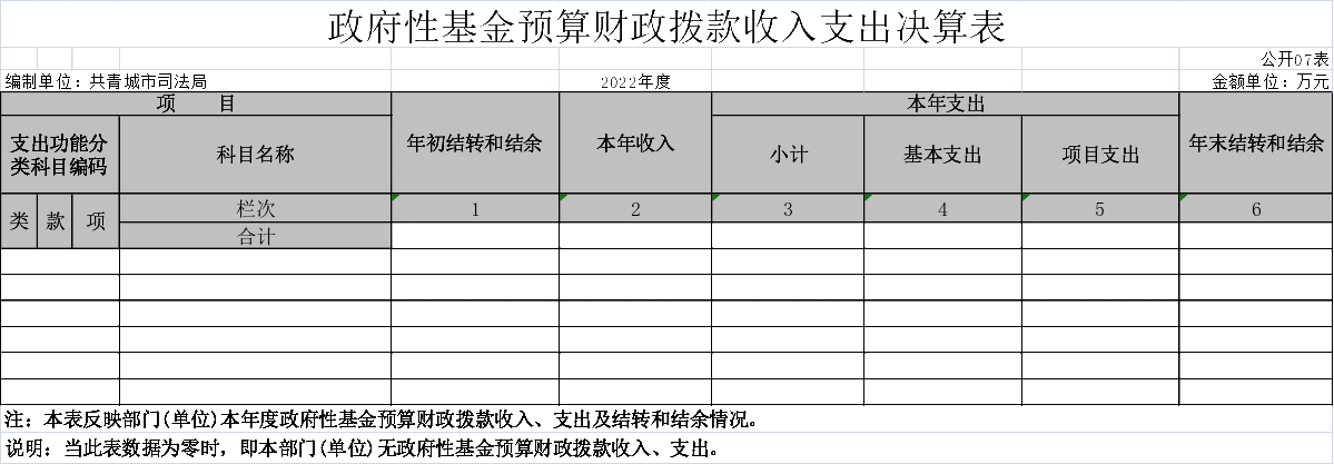 七、政府性基金预算财政拨款收入支出决算表
