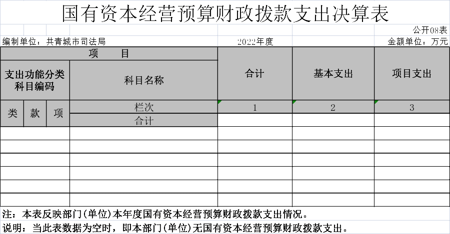 八、国有资本经营预算财政拨款支出决算表