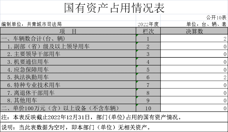 截止2022年12月31日,本部门国有资产占用情况见公开10表《国有资产占用情况表》。其中车辆中的其他用车为0,主要原因是本单位无其他用车。