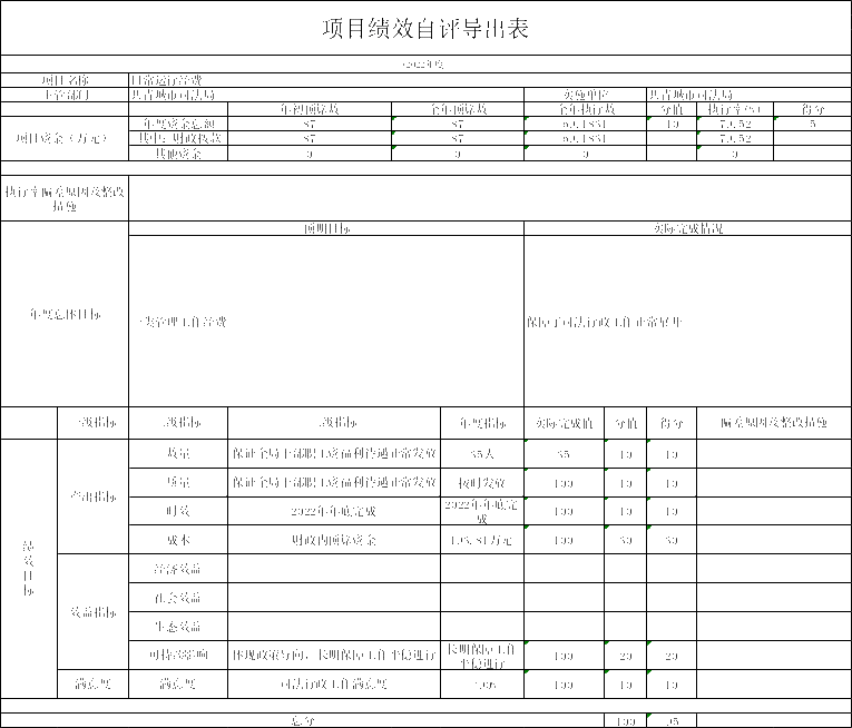 共青城市司法局日常运行经费项目完成情况较好,保障了司法行政工作正常展开,项目绩效得分为95分。