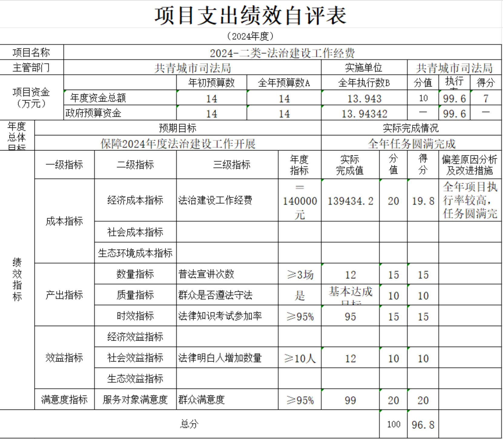 绩效评价对象:共青城市司法局法治建设工作经费项目