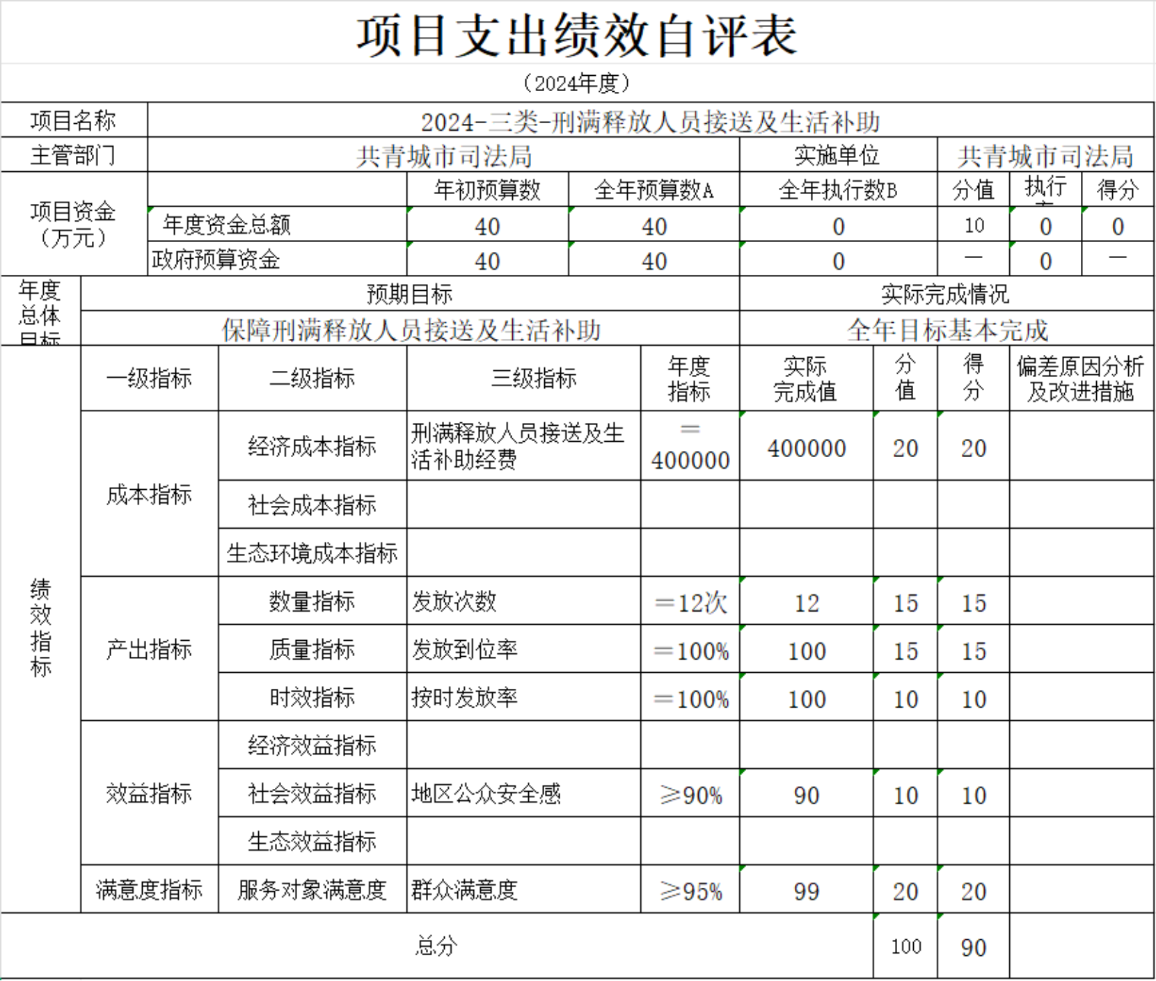 10、三类-刑满释放人员接送及生活补助经费全年预算资金40万元,实际支出0万元;