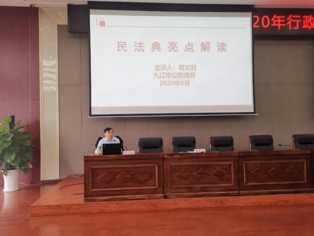 在共青城市2020年行政执法培训中,九江市司法局局长、市公职律师周文利同志从《中华人民共和国民法典》的出台背景、亮点、意义等方面进行详细讲解,授课内容理论基础深厚,案例丰富,具有很强的现实指导意义,切实提升了执法人员法律知识和法治素养。共青城市司法局局长杨克龙同志针对我市近几年发生的案件进行深入剖析,理论结合实际,以案释法。要求各执法人员严格执法、规范执法、文明执法。