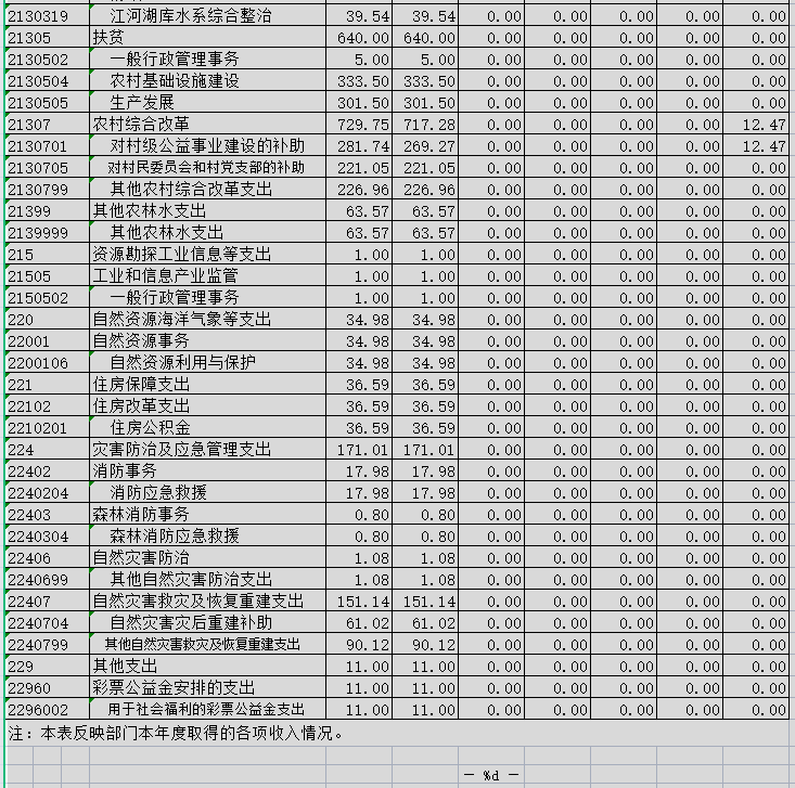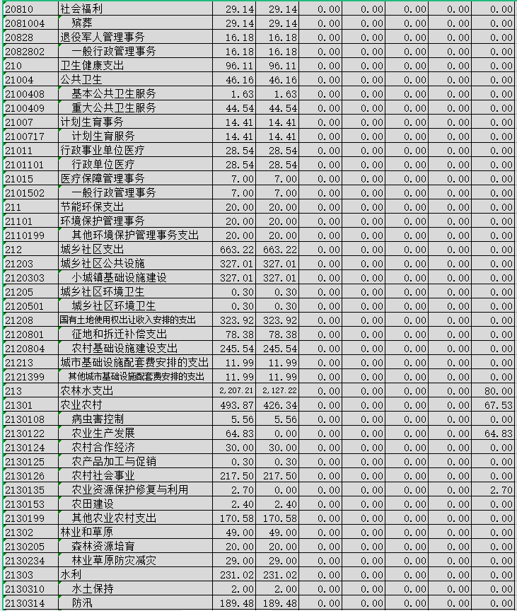 (七)农林水支出年初预算数为130.5万元,决算数为2470.22万元,完成年初预算数的1892.89%,主要原因是:农林水支出增加2339.72万元。
