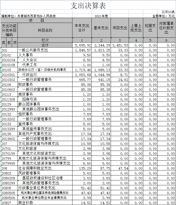 本部门2021年度支出总计 5695.92万元,其中本年支出合计5695.92万元,较2020年减少1720.48万元,下降23.20%,主要原因是:(一)一般公共服务支出减少390.70万元,下降17.46%;(二)文化旅游体育与传媒支出减少21.25万元,下降66.76%;(三)社会保障和就业支出减少339.91万元,下降71.53%;(四)城乡社区支出减少1641.80万元,下降70.61%;(五)农林水支出增加493.53万元,增长23.83%;(六)灾害防治及应急管理支出增加148.53万元,增长88.76%。年末结转和结余 0 万元,较2020年增加(减少)489.43万元,增长(下降)100%,主要原因是:2021年年末将结转和结余资金指标全额收回。