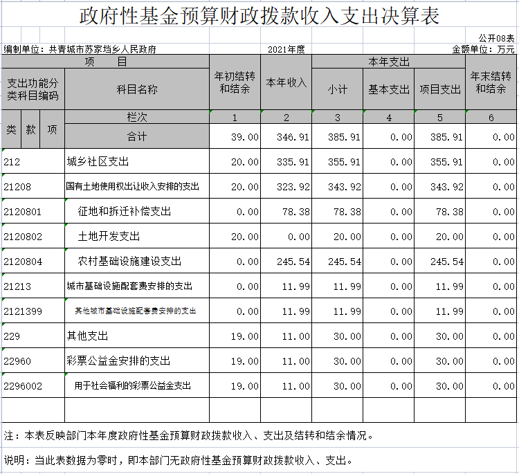 (六)城乡社区支出年初预算数为724万元,决算数为683.22万元,完成年初预算数的94.37%,主要原因是:2021年度城乡社区项目中部分新农村建设项目未完成审计备案,未完全支出。