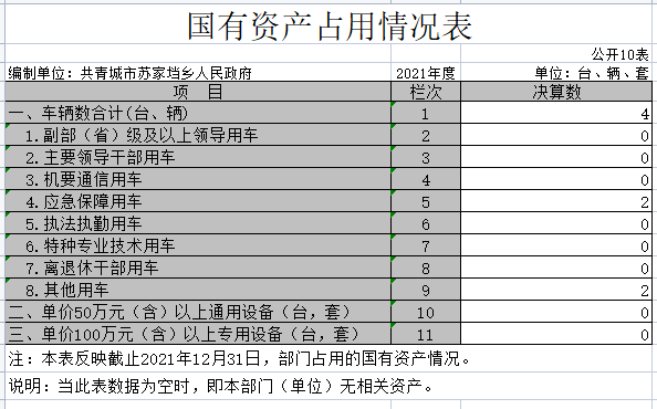 截止2021年12月31日,本部门(单位)国有资产占用情况见公开10表《国有资产占用情况表》。其中车辆中的其他用车主要是垃圾清运车。