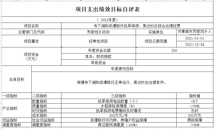 组织对“基层运转保障经费”、“村居转移支付资金”、“社区组织运转保障经费”、“圩堤管理工作经费”、“寺下湖和浆潭联圩抗旱排涝、周边村庄综合治理经费”、“乡镇经济社会发展专项资金”、“原四厂职工、行政聘干人员工资福利”等7个项目开展了部门评价,涉及一般公共预算支出1598.50万元,政府性基金预算支出 0 万元,国有资本预算支出 0万元。从评价情况来看,1、保障苏家垱乡10个行政村与1个居委会各项工作正常开展。2、保障圩堤管理中心等三家单位运转及职工权益。3、保障寺下湖和浆潭联圩正常运行,周边村庄治理有序。4、保障苏家垱乡集镇提升改造、群团中心建设及其他乡村发展项目工程款及农民工工资支付。