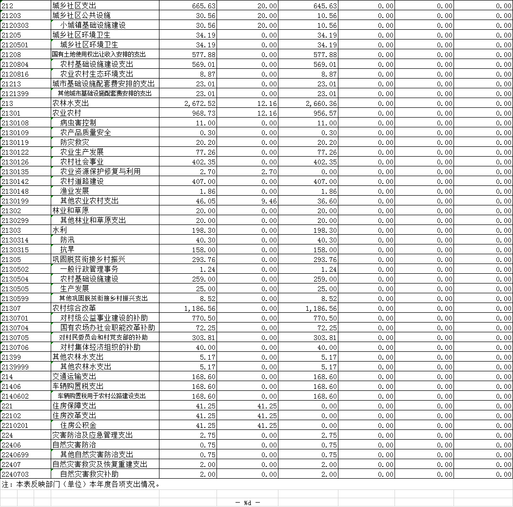 本部门2022年度支出总计5545.12万元,其中本年支出合计5545.12万元,较2021年减少150.8万元,下降2.6%,主要原因是:(一)一般公共服务支出减少137.14万元,下降7.4%;(二)文化旅游体育与传媒支出减少2.68万元,下降25.3%;(三)社会保障和就业支出减少19.83万元,下降14.7%;(四)城乡社区支出减少17.59万元,下降2.6%;(五)农林水支出增加108.23万元,增长4.2%;(六)灾害防治及应急管理支出增加234.53万元,下降98.8%。;年末结转和结余0万元,与2021年持平。