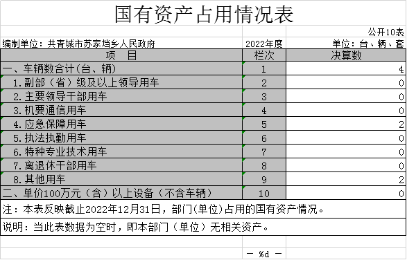 截止2022年12月31日,本部门(单位)国有资产占用情况见公开10表《国有资产占用情况表》。其中车辆中的其他用车主要是垃圾清运车。
