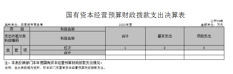 九、国有资本经营预算财政拨款支出决算表