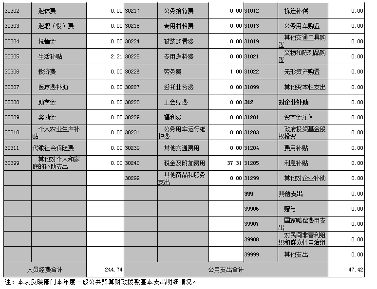 本部门2021年度机关运行经费支出 47.42万元(与部门决算中行政单位和参照公务员法管理事业单位一般公共预算财政拨款基本支出中公用经费之和一致),较上年决算数减少97.04 万元,降低67.38%,主要原因是:办公设施设备购置经费(减少、资产运行维护支出减少,落实过紧日子要求。