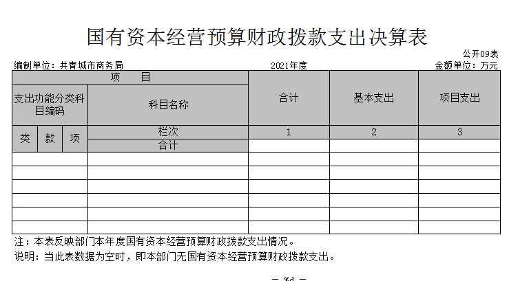 九、国有资本经营预算财政拨款支出决算表