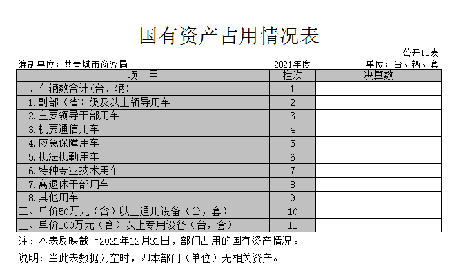 截至2021年12月31日,本部门(单位)国有资产占用情况见公开10表《国有资产占用情况表》。其中无车辆中的其他用车主要是无