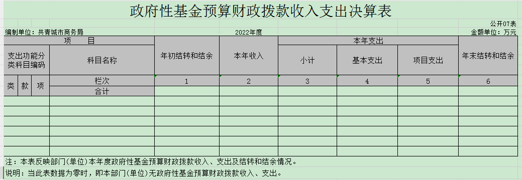 七、政府性基金预算财政拨款收入支出决算表