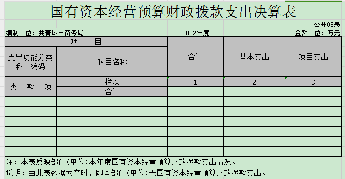 八、国有资本经营预算财政拨款支出决算表