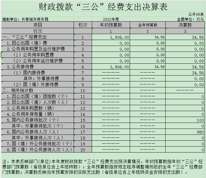 本部门2022年度财政拨款“三公”经费支出全年预算数为34.56万元,决算数为34.56万元,完成全年预算的100%,决算数较2021年减少7.19万元,下降17.22%,其中: