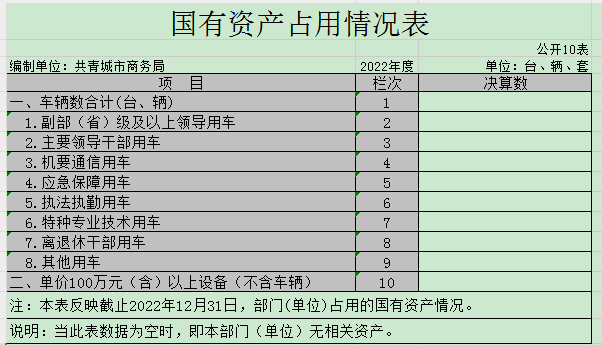 截至2022年12月31日,本部门国有资产占用情况见公开10表《国有资产占用情况表》。其中车辆中的其他用车主要是无。