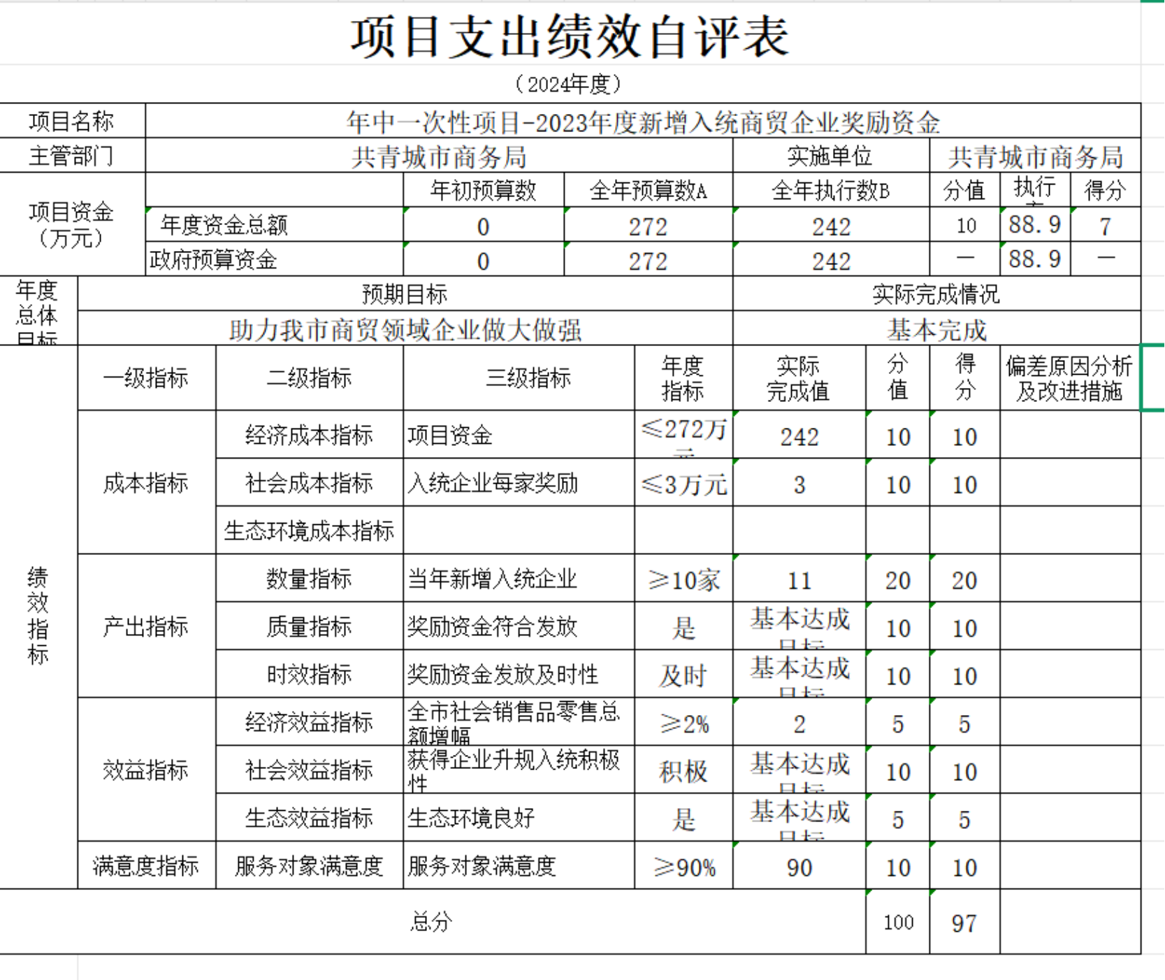 部门:共青城市商务局2024年度金额单位:万元