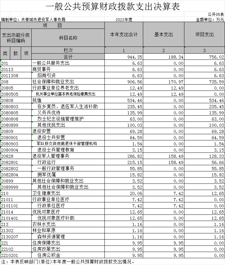 共青城市退役军人事务局2022年度部门决算
