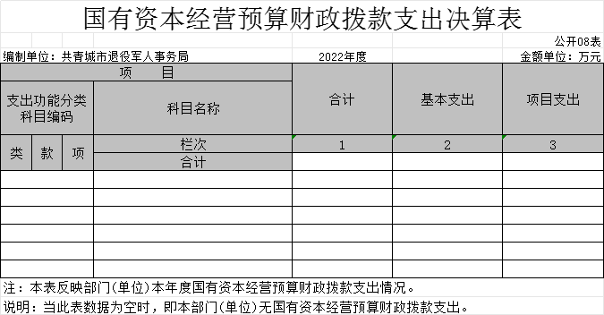 八、国有资本经营预算财政拨款支出决算表