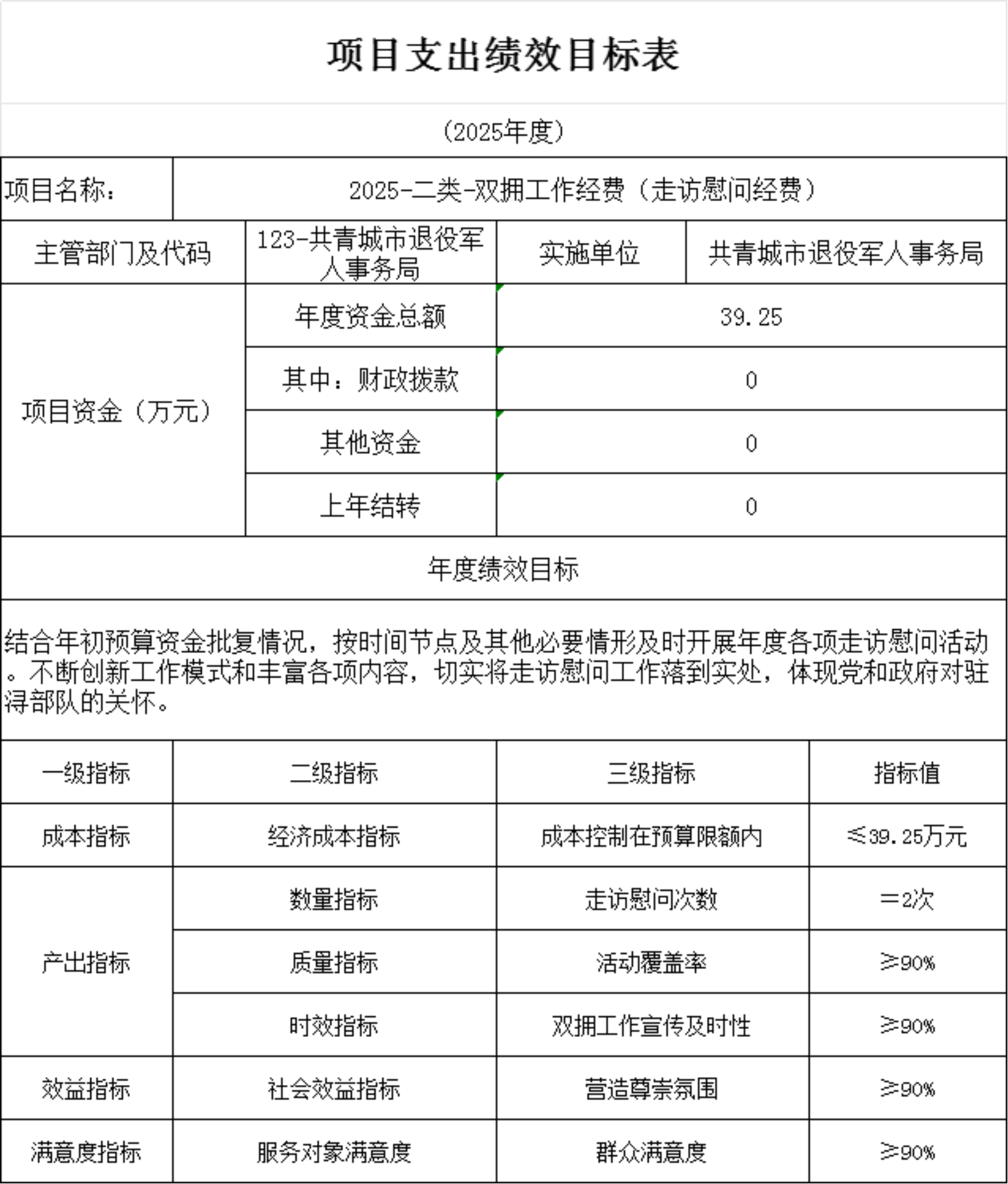 共青城市退役军人事务局2025年项目支出绩效目标表.xlsx